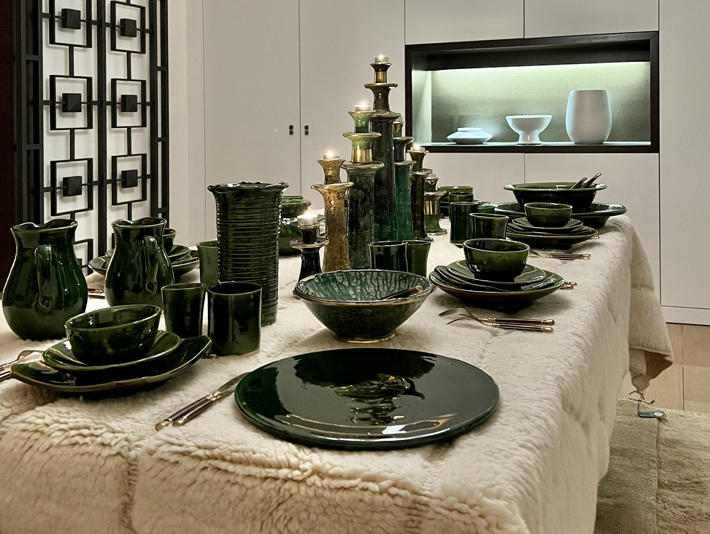 Enfin, lorsque la pâte à fermenté il peut commencer façonner plats, jarres et bougeoirs.